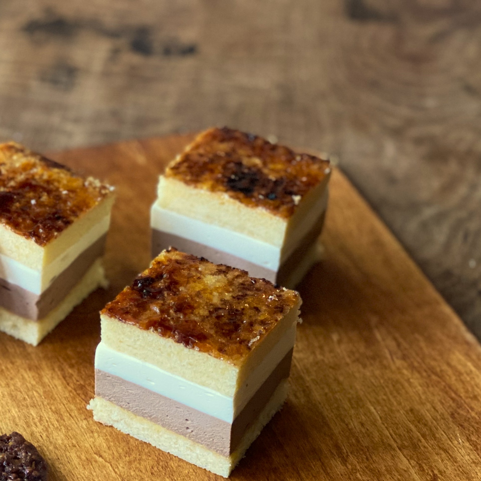フランス伝統菓子のサンマルク。卵黄とチョコレートの2層のクリームと、カラメリゼしたトップのほろ苦い甘さが重なって王道のケーキの美味しさです。