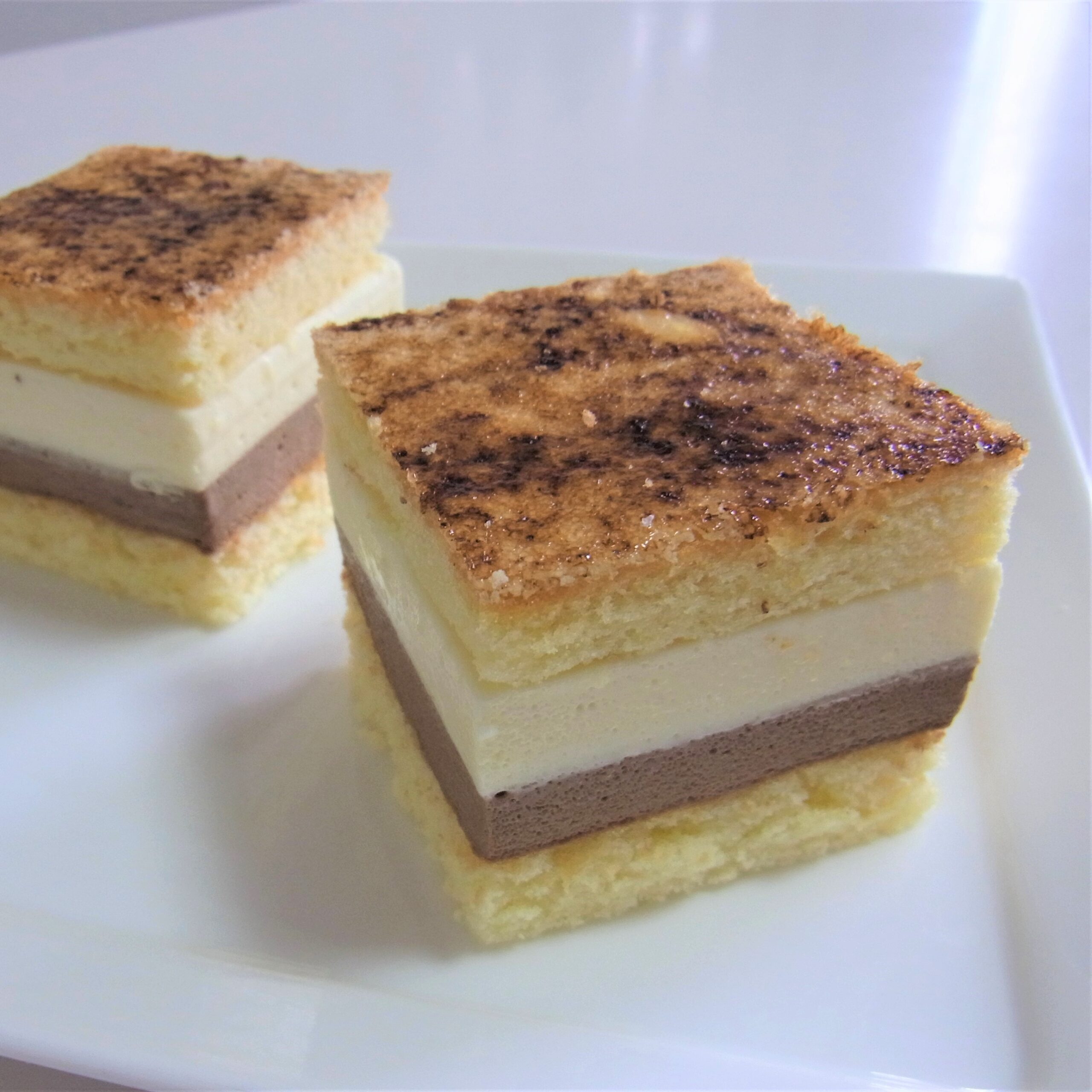 フランス伝統菓子のサンマルク。卵黄とチョコレートの2層のクリームと、カラメリゼしたトップのほろ苦い甘さが重なって王道のケーキの美味しさです。