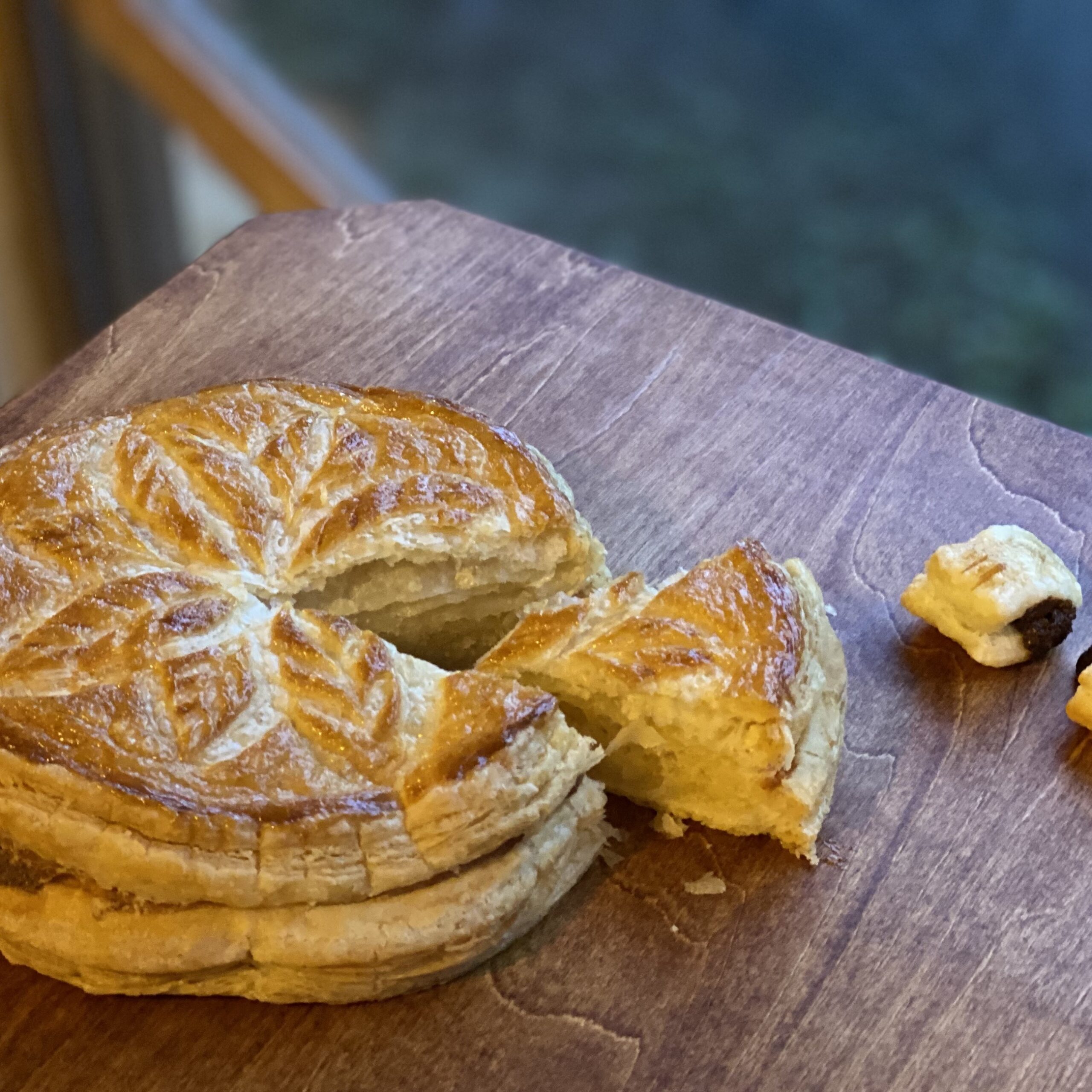 フランスの公現祭に食べられる伝統菓子。丁寧にパイを三つ折りして生地を作ります。