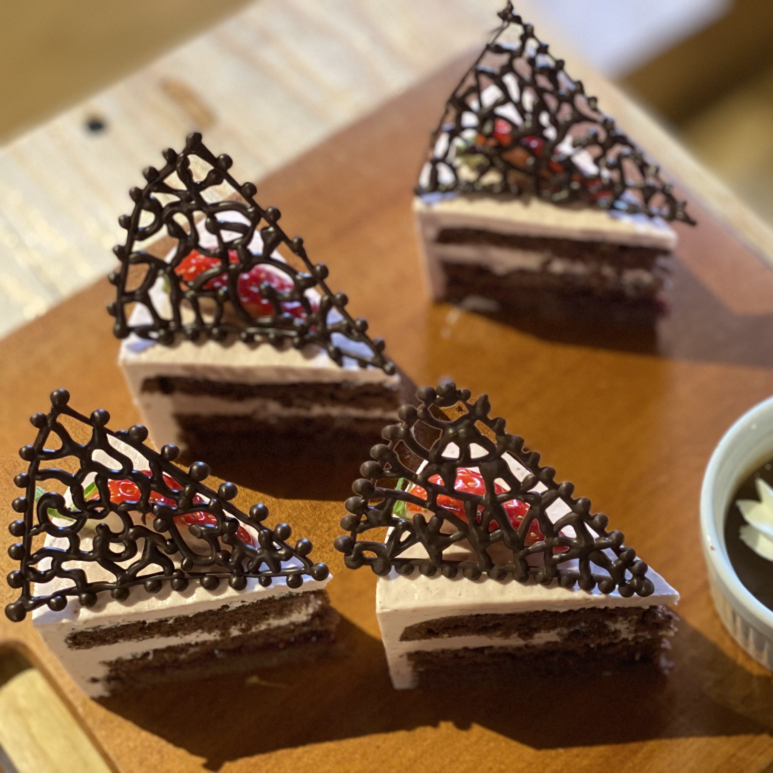 ふんわりと焼いたココアの生地と苺のババロアは相性の良い組み合わせ。
